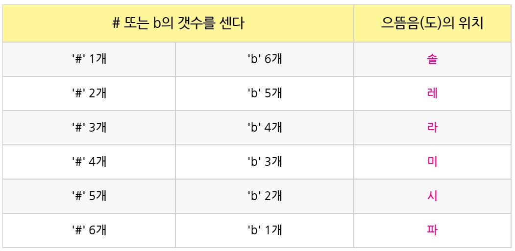 '#', 'b'과 으뜸음의 위치를 표시한 겁니다.